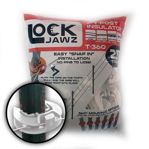 LOCK JAWZ UNIVERSAL 360° T-POST ELECTRIC FENCE INSULATORS