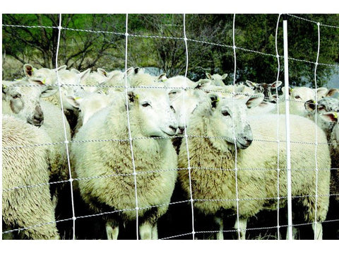 Una cerca prefabricada que tiene 9 hilos horizontales (8 conductores); tiene una altura instalada de 35" y tiene grandes puntales verticales de plástico blanco cada 12". Los postes de PVC blanco están integrados en la malla cada 12,5'. Cuando se activa, es casi una malla impenetrable para ovejas, cabras, coyotes y perros. Los colores blanco y negro brindan visibilidad las 24 horas del día, los 7 días de la semana, tanto para humanos como para animales contra fondos claros y oscuros.